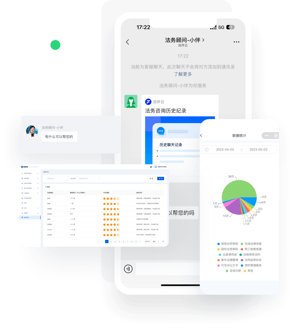 工单设有评价系统,所有完成的工单都会有客户进行工单评价,工单评价会汇总成对应的法务的综合评价